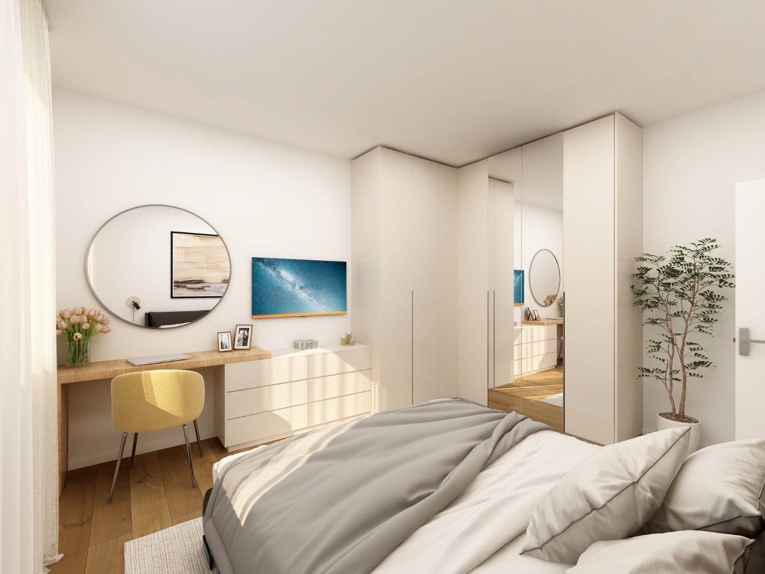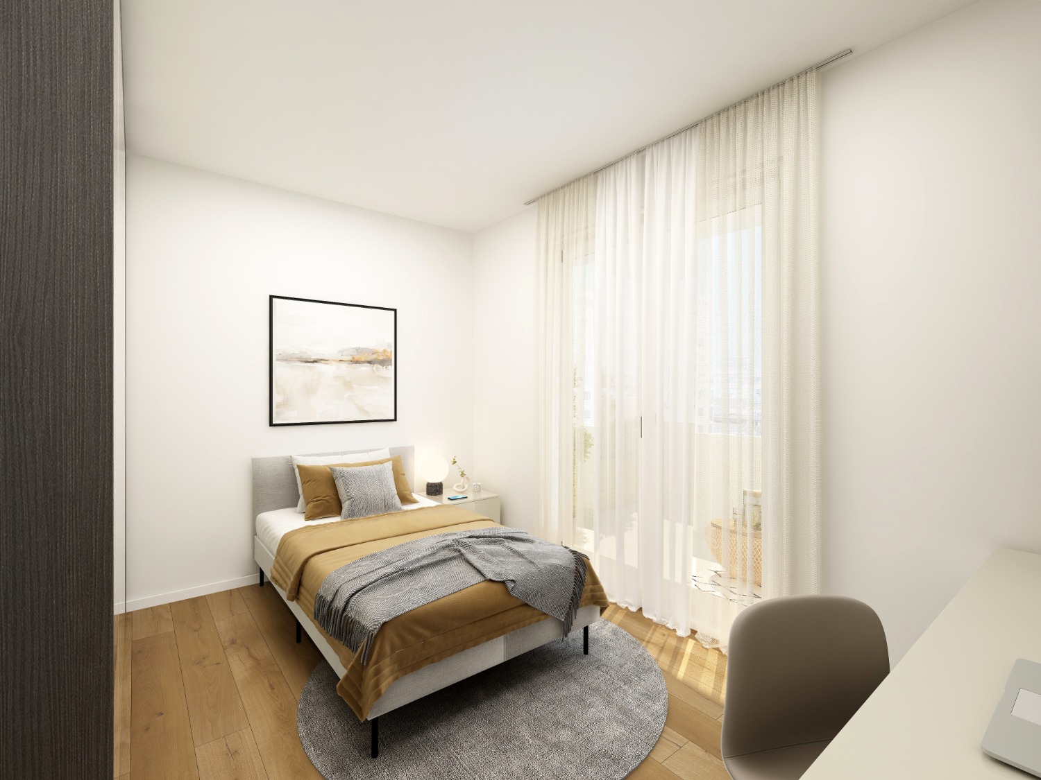 Terrazzo grande sulla zona giorno. Balcone privato in camera.
