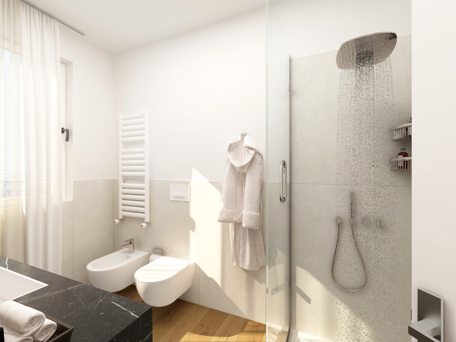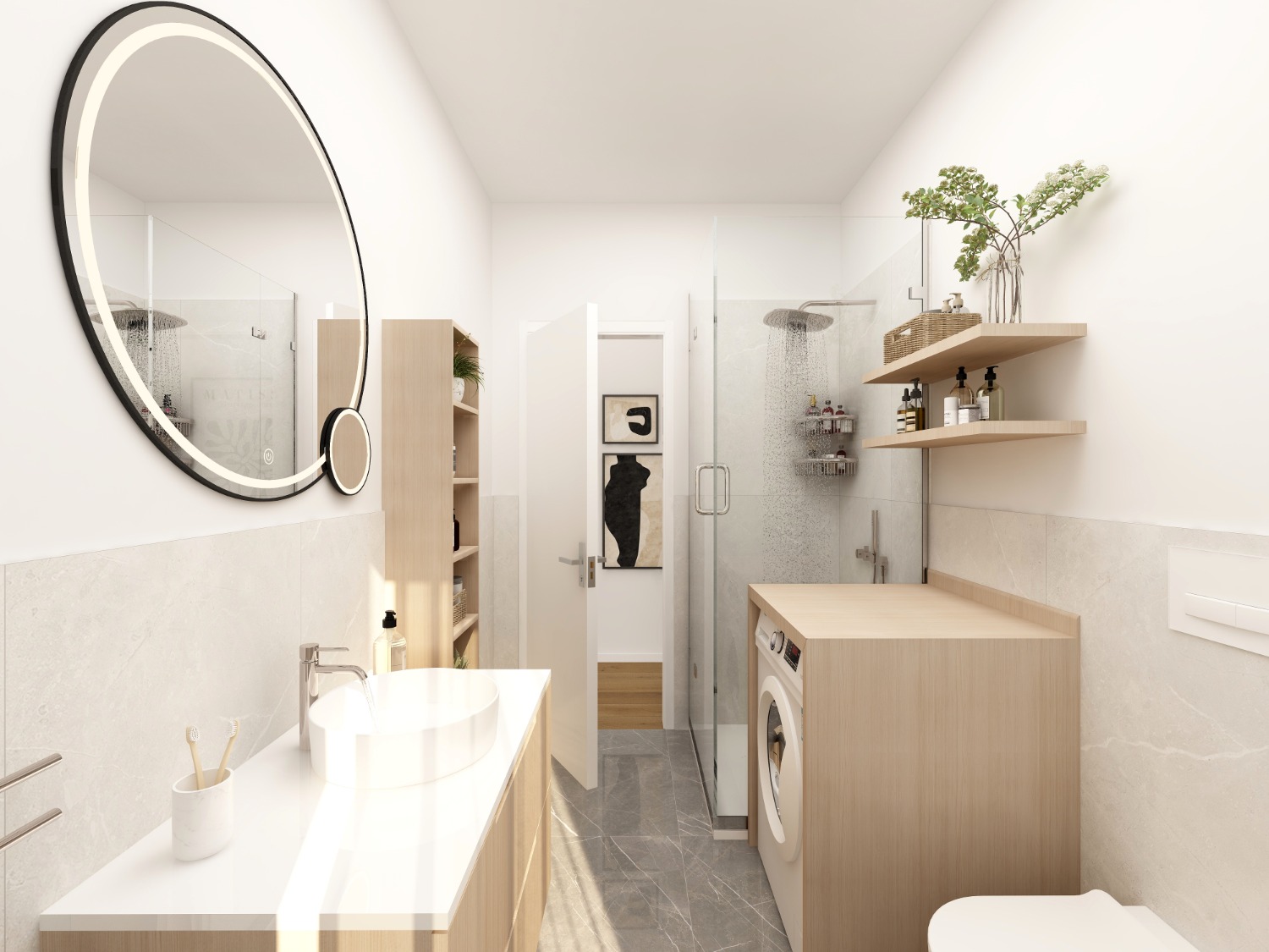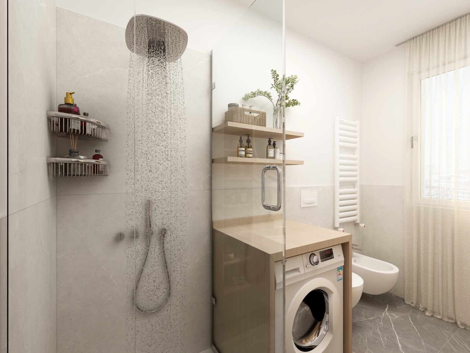Vuoi trasformarne uno in lavanderia? Puoi. L'altro resta bagno completo.